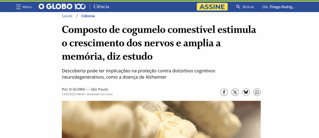 Estudos científicos indicam que o Hericium erinaceus (Juba de Leão) tem a capacidade de estimular a produção do fator de crescimento nervoso (NGF, Nerve Growth Factor). O NGF é uma proteína essencial para a neuroplasticidade, a regeneração neuronal e a manutenção da cognição ao longo da vida.